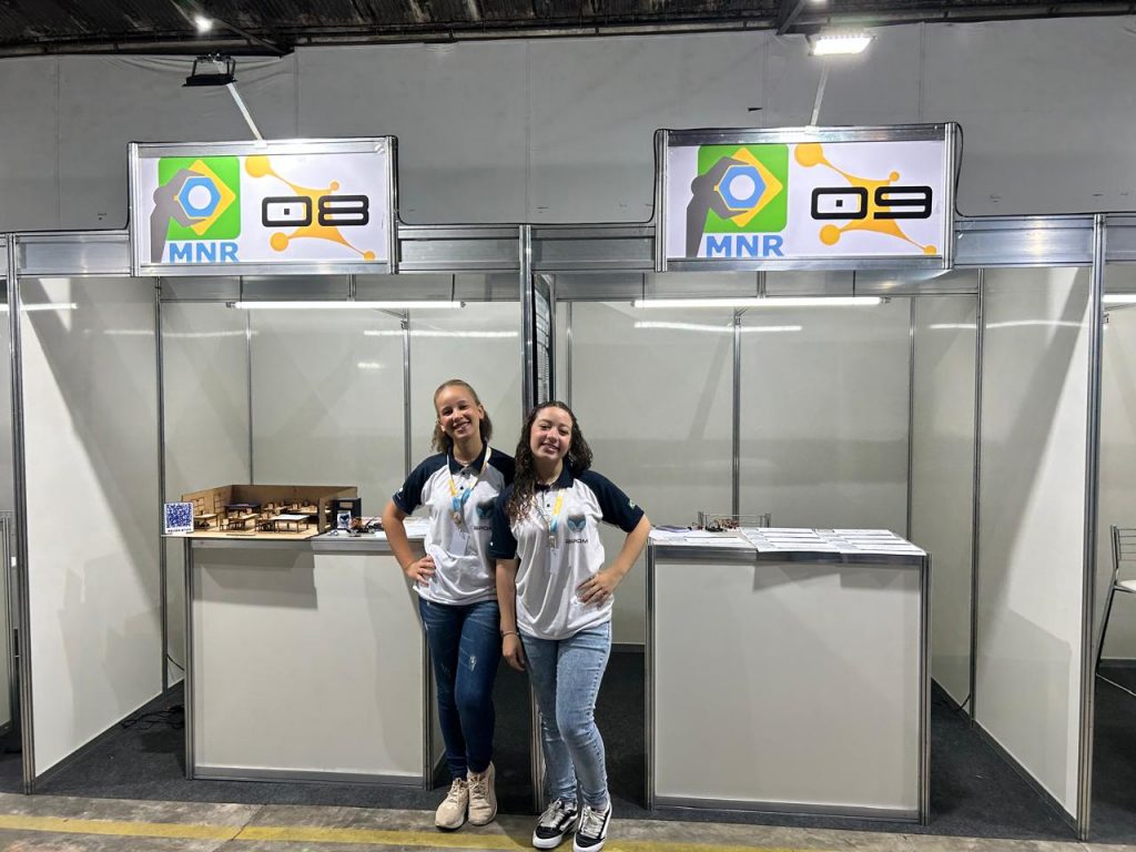 A Equipe AIROM, composta pelas discentes Ana Carolina Rodrigues Palmuti e Yasmin Camargo Ribeiro apresentaram os trabalhos, na MNR´2025, “Robótica: Educação STEAM nos 8° e 9° anos do ensino fundamental” e “Desenvolvimento de alarme de segurança para ambientes laboratoriais“, frutos de pesquisas de iniciação científica júnior.